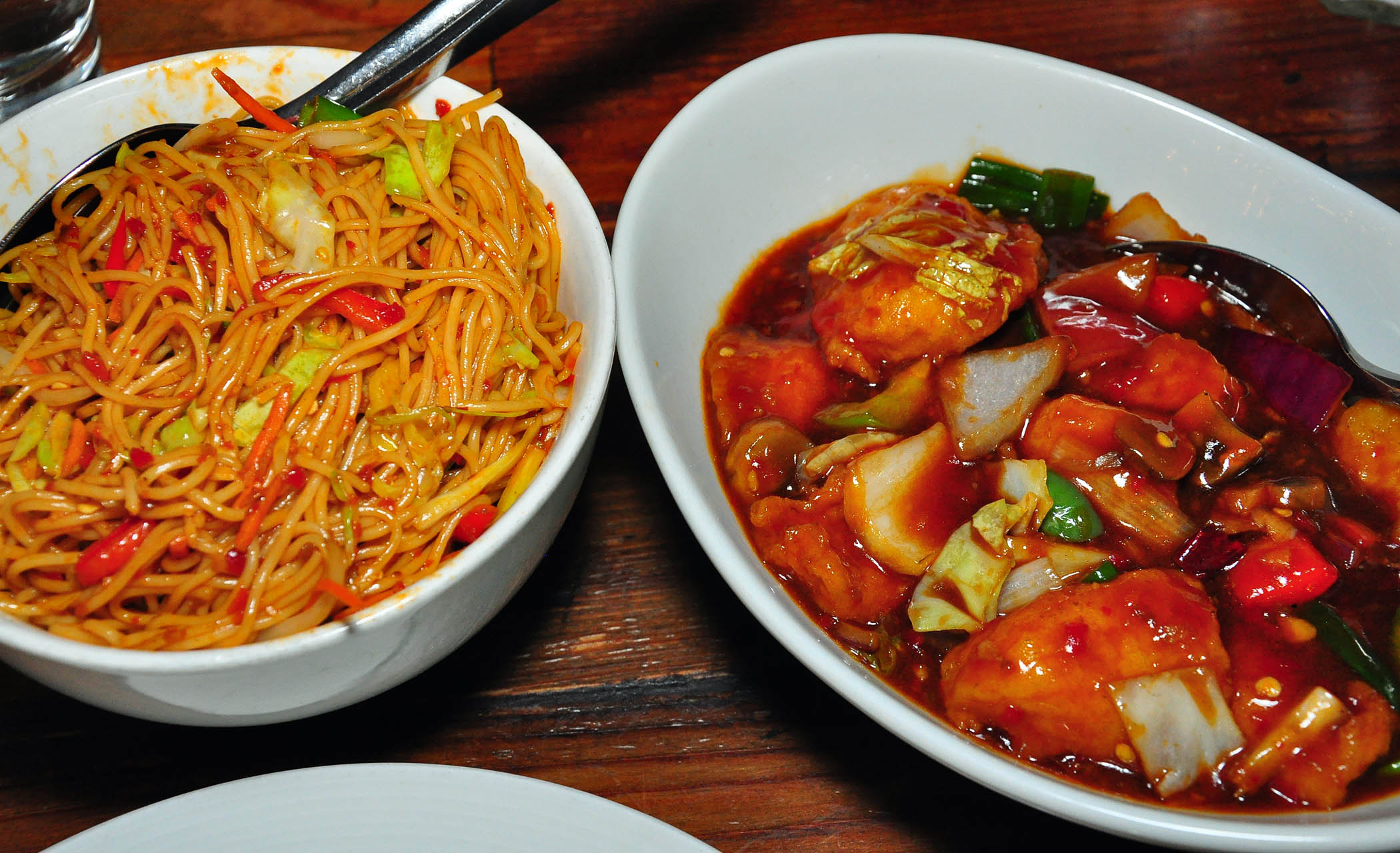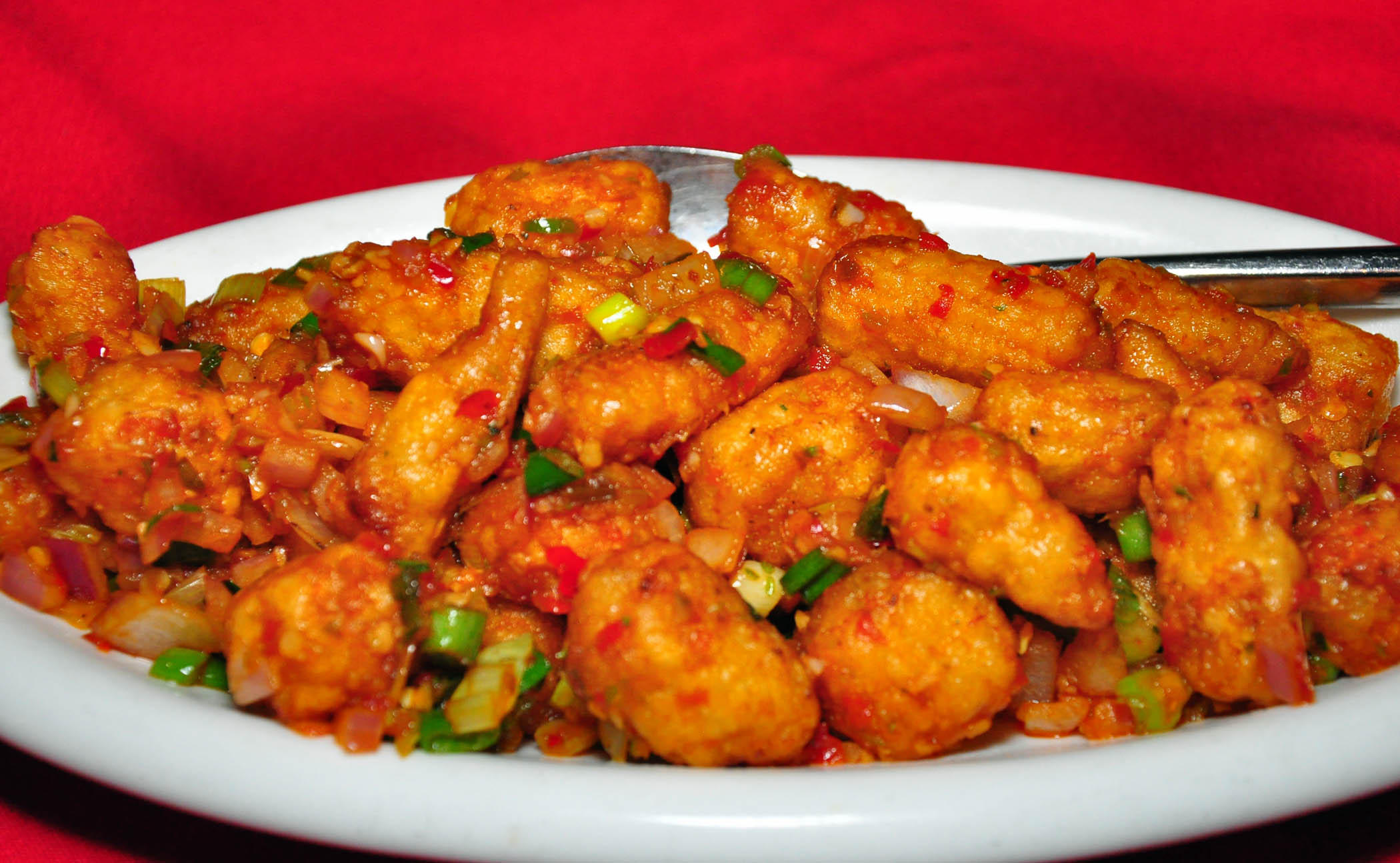 The restaurant’s menu reflects a fiery combination of Chinese seasonings and cooking techniques with Indian ingredients and flavors. This fusion cuisine originated in Kolkata (a.k.a. Calcutta), India in a turn-of-the-century Chinatown, and developed into a culinary marvel with a unique flavor profile that so many people, not necessarily of Chinese of Indian descent found wonderfully appealing.