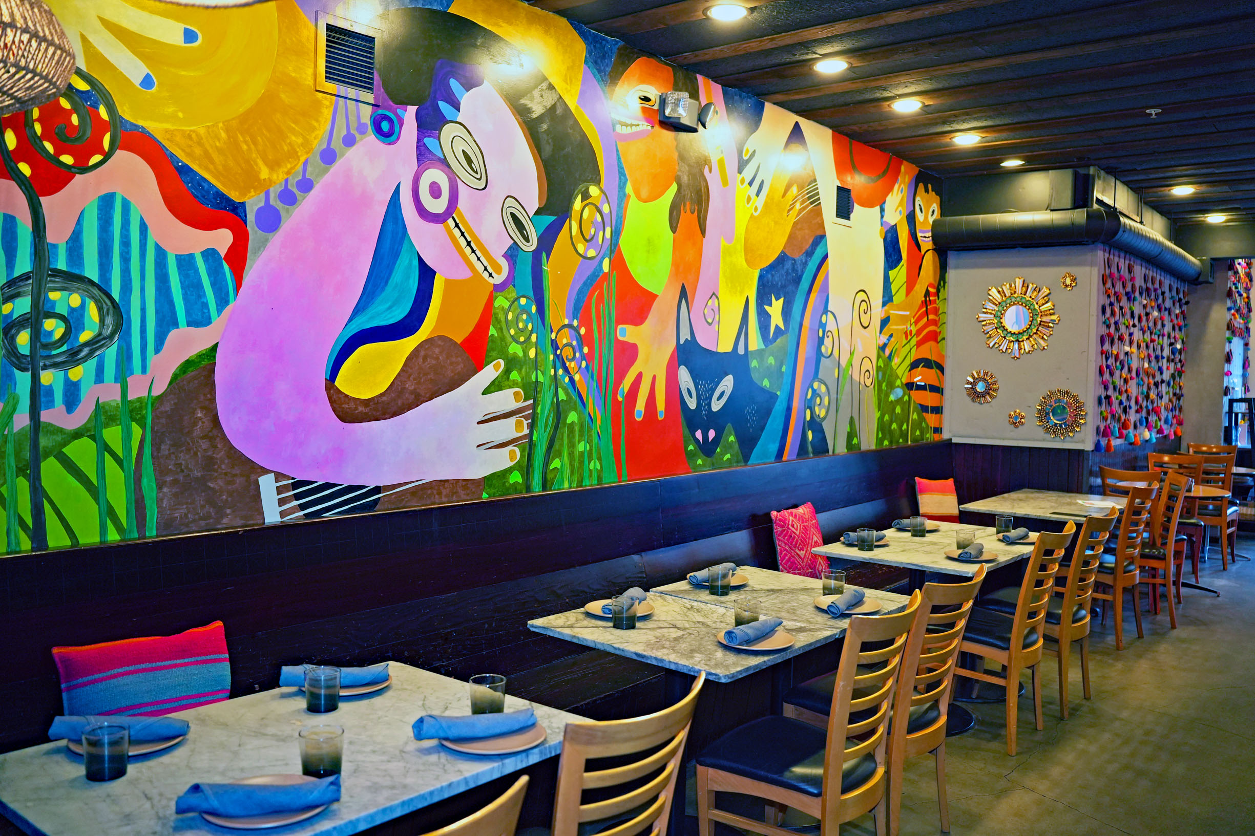 Following in the footsteps of San Francisco’s award-winning La Mar Cebicheria Peruana, and concieved by the same culinary team, Jaranita (“Jarana” means revelry in Spanish) is a festive eatery with indoor and outdoor seating, and a patio, decorated with handicrafts from Cuzco, anchored by a Yunza tree, a traditional Carnival attribute, filled with colorful “gifts” and artifacts.