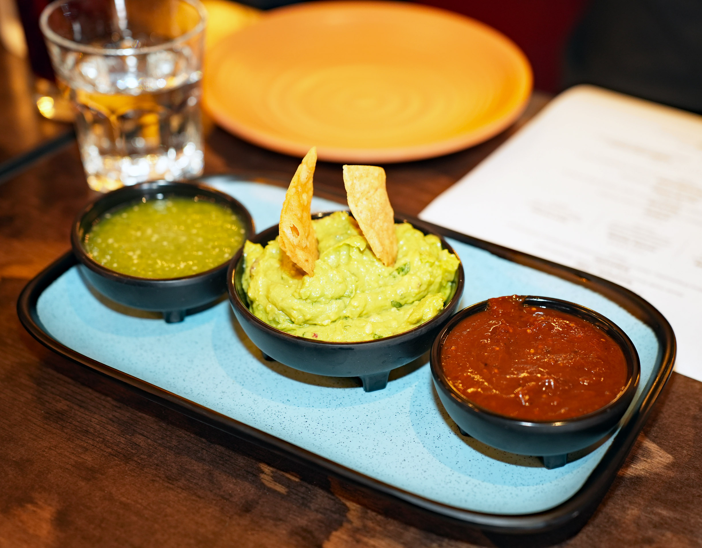 If you walk in to sit at the bar and watch sports TV on one of the overhead big screens, you might want to start and finish with all-house-made Guacamole, chips, and two kinds of mild and hot sauces—Roasted Salsa and Tomatillo Salsa, just to nibble on something while enjoying your drinks. Bar master’s liquid masterpieces, like La Paloma and Rouge Margarita, plus a delightful non-alcoholic Agua de Jamaica or “hibiscus water” are served with sturdy straws made of agave (instead of those horrible soggy paper ones—many thanks for that!)