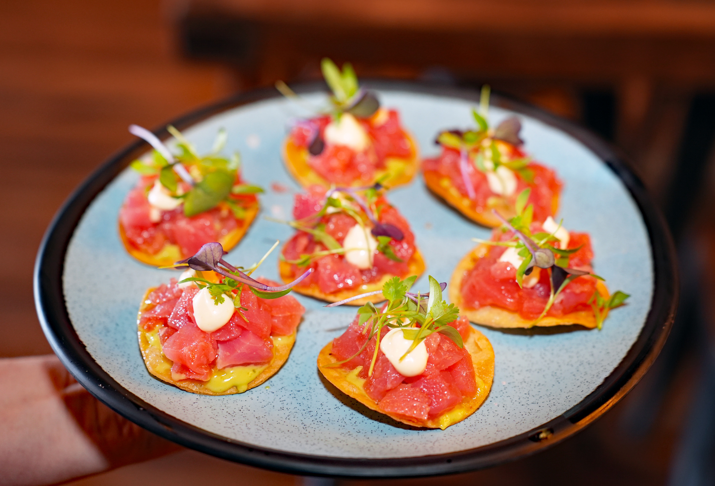It’s always a good idea to start dining here with sake-based original cocktails, like El Cholito de la Marina (straight sake, dry vermouth, lime juice, jalapeno), Jaranita Rita (Sabe sake infused with blanco tequila, pineapple syrup, lime juice, agave) and Nikkei Sour (citrus sake, lime, egg white, chocolate bitters).