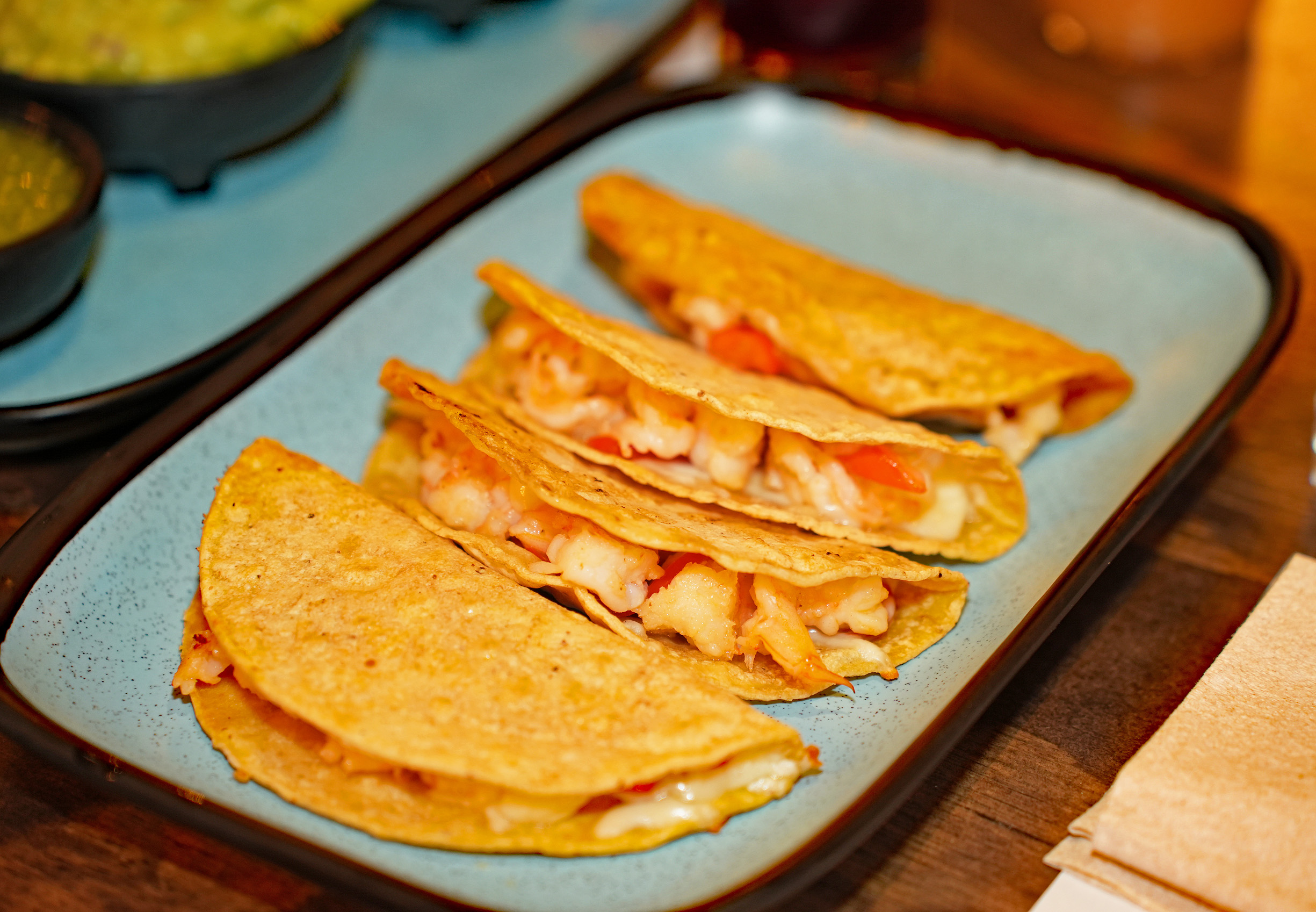 But if you come to Taco Rouge for a real authentic Mexican dining experience, go straight to the stars of the show—the incredible tacos—Al Pastor (marinated pork, pineapple, house-made tortillas), Taco Arabe (marinated pork, cucumber, cilantro labne, chipotle salsa, pita bread), Taco de Cachete (braised beef cheeks, flour tortilla, roasted salsa), and Taco Gobernator (grilled shrimp marinated in spices, melted Monterey Jack cheese, red peppers, corn tortilla).