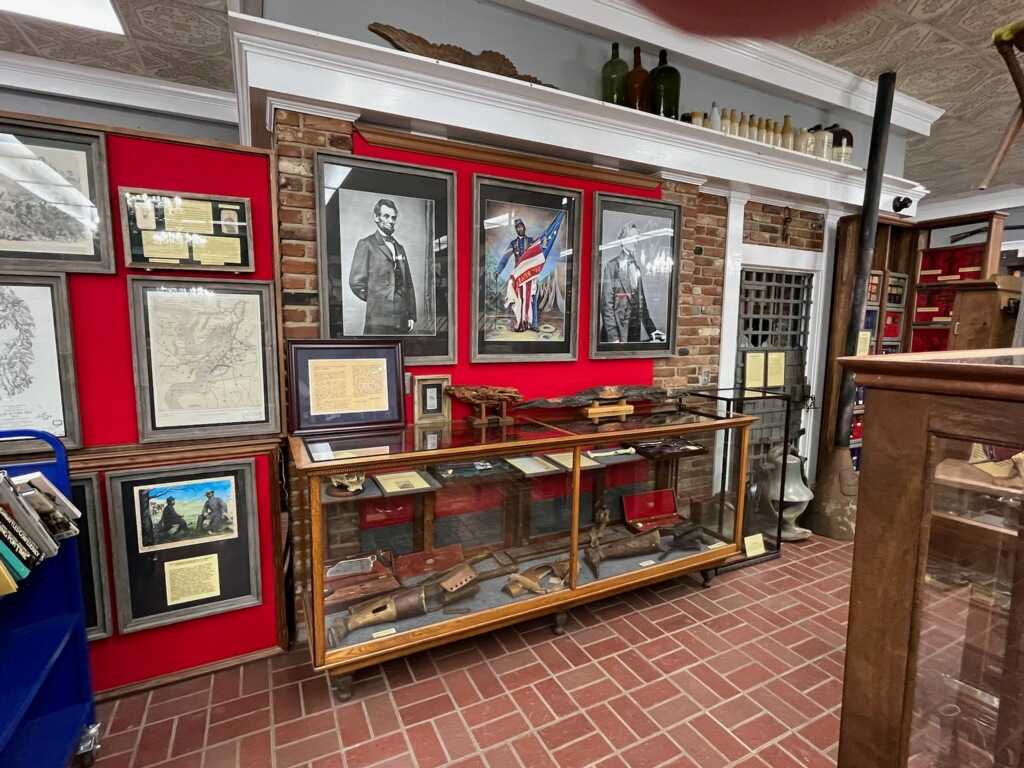 At the Civil War Museum entrance, we saw many interesting flags and posters, but we did not see the familiar Civil War flag of red background and blue X. That really made us curious. As we entered we were greeted by Charles Pendleton, a very friendly and attractive young man who, we learned, is the creator of the museum. He has always been a history buff and a collector of Civil War items, which he purchased from various garage and antique sales. Some of the items had been donated by families searching for the right place to honor sacred items from their family history. Charles instructed us, and all visitors to read his beautifully framed Mission Statement before we could go farther into the museum: