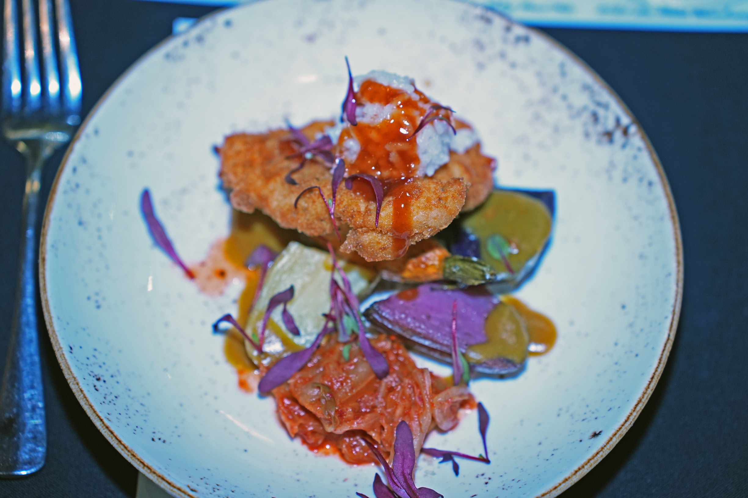 Since the winery is famous for its Burgundy-style chardonnay, the course that followed matched Russian River Ranches Chardonnay 2022 with Onion and Spinach Quiche with citrus radish salad, then The Cutrer Russain River Valley Chardonnay 2021 with Chicken Katsu with glazed root vegetables in golden curry.