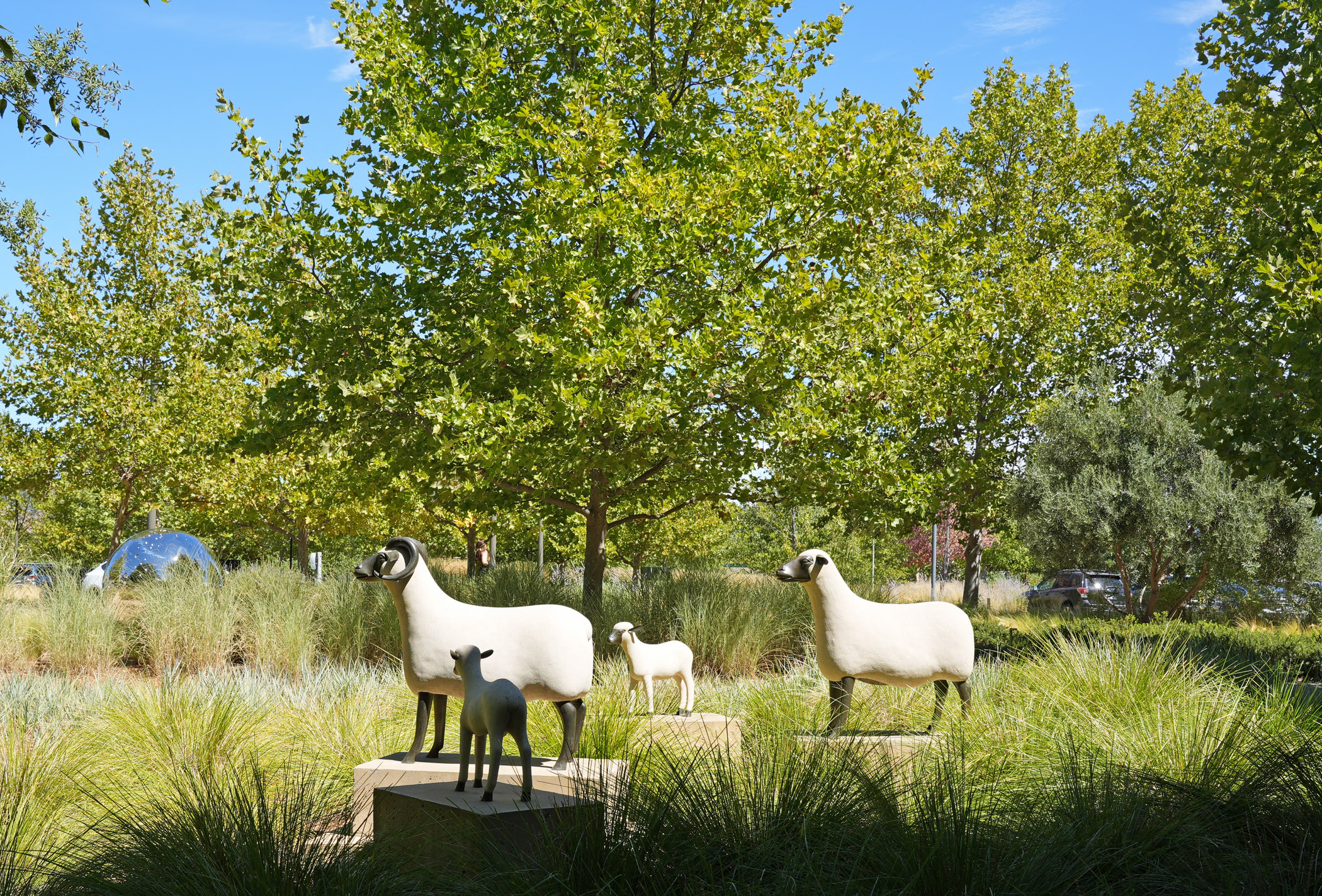 HALL Wines When you see a shiny, lacy metal 35-ft-tall Bunny Foo Foo leaping up from a lush vineyard, know that you have arrived! This exceedingly cute despite its gigantic measurements sculpture, created by Lawrence Argent from polished stainless steel in 2014, became a Napa Valley landmark and an unmistakable marker of the HALL Wines St. Helena, visible from highway 29 to all the wine and art aficionados traveling here from near and far. The Bunny isn’t alone—many other works of contemporary art are placed throughout the HALL premises for the visitors to enjoy.