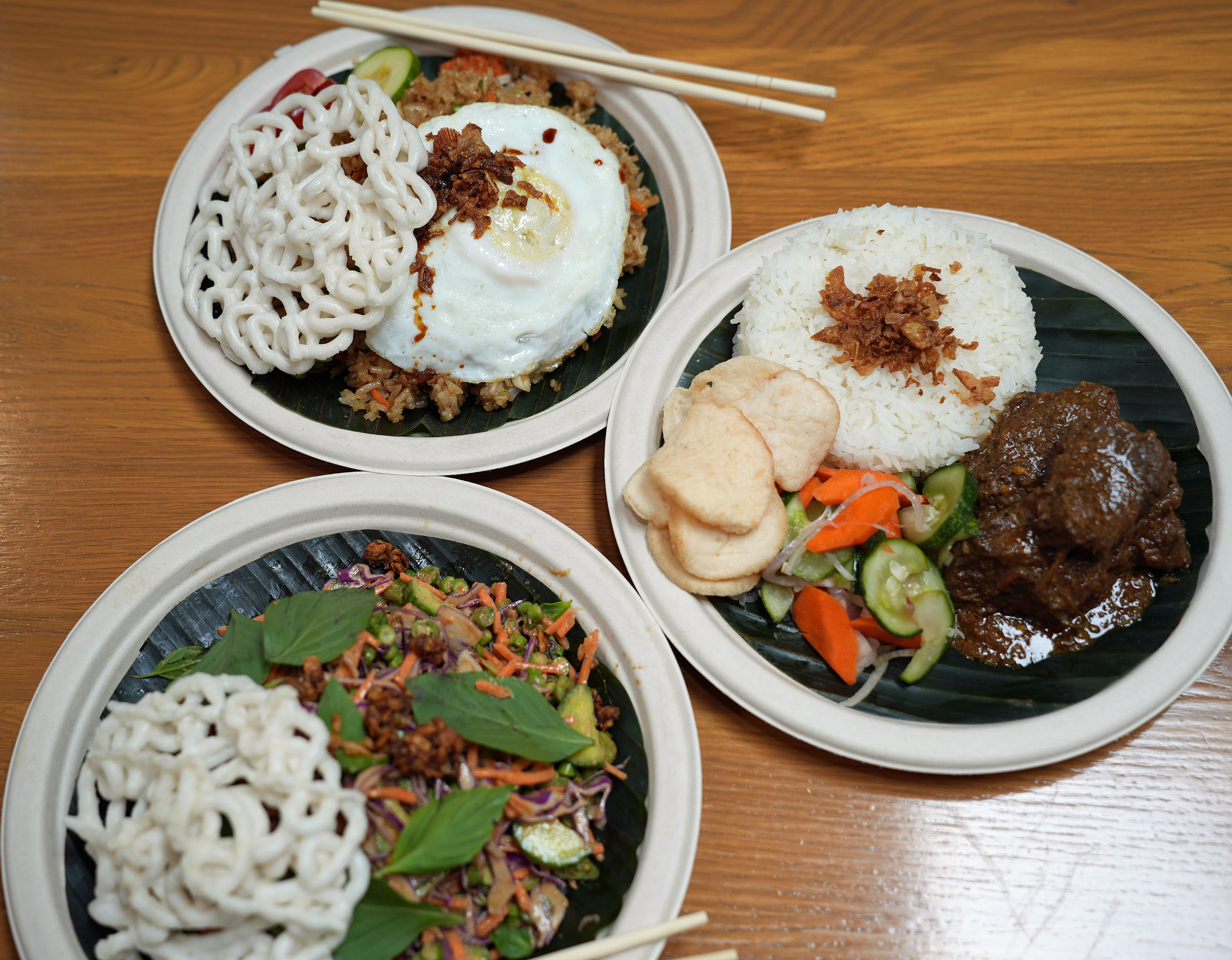 Some influences from Chinese, Indian, Dutch, Portuguese, and Middle-Eastern cultures can be traced in NUSA’s signature dishes, like Indonesian Fried Rice Nasi Goreng, Caramelized Spiced Beef Rendang, Chicken Sate Ayam, 1000 Layer Cake (Spekkoek), Pandan Mochi Layer, and Sweet Rice Pandan Custard. https://publicmarketemeryville.com/, https://www.lacocinasf.org/, https://nusasf.square.site/.