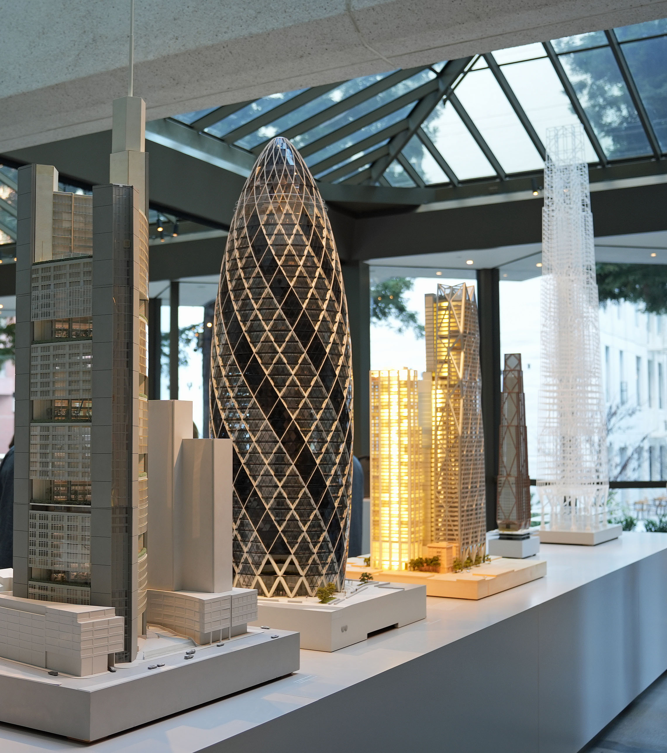 The Vertical City, curated by Foster + Partners, highlighted visionary tall-building designs by Lord Norman Foster who considered a skyscraper to be emblematic of the modern-age city and a reminder that the city is arguably civilization’s greatest invention. A vertical community, well served by public transport, can be a model of sustainability, especially when compared with a sprawling low-rise equivalent in a car-dependent suburb. The Norman Foster Foundation has collaborated in this exhibition by lending a selection of nine drawings by Norman Foster and the model of the Concrete Office Building for New Haven, Connecticut. Originally developed by Norman Foster during his time as a Yale student, the model was made by the Model Making Unit at the Norman Foster Foundation.