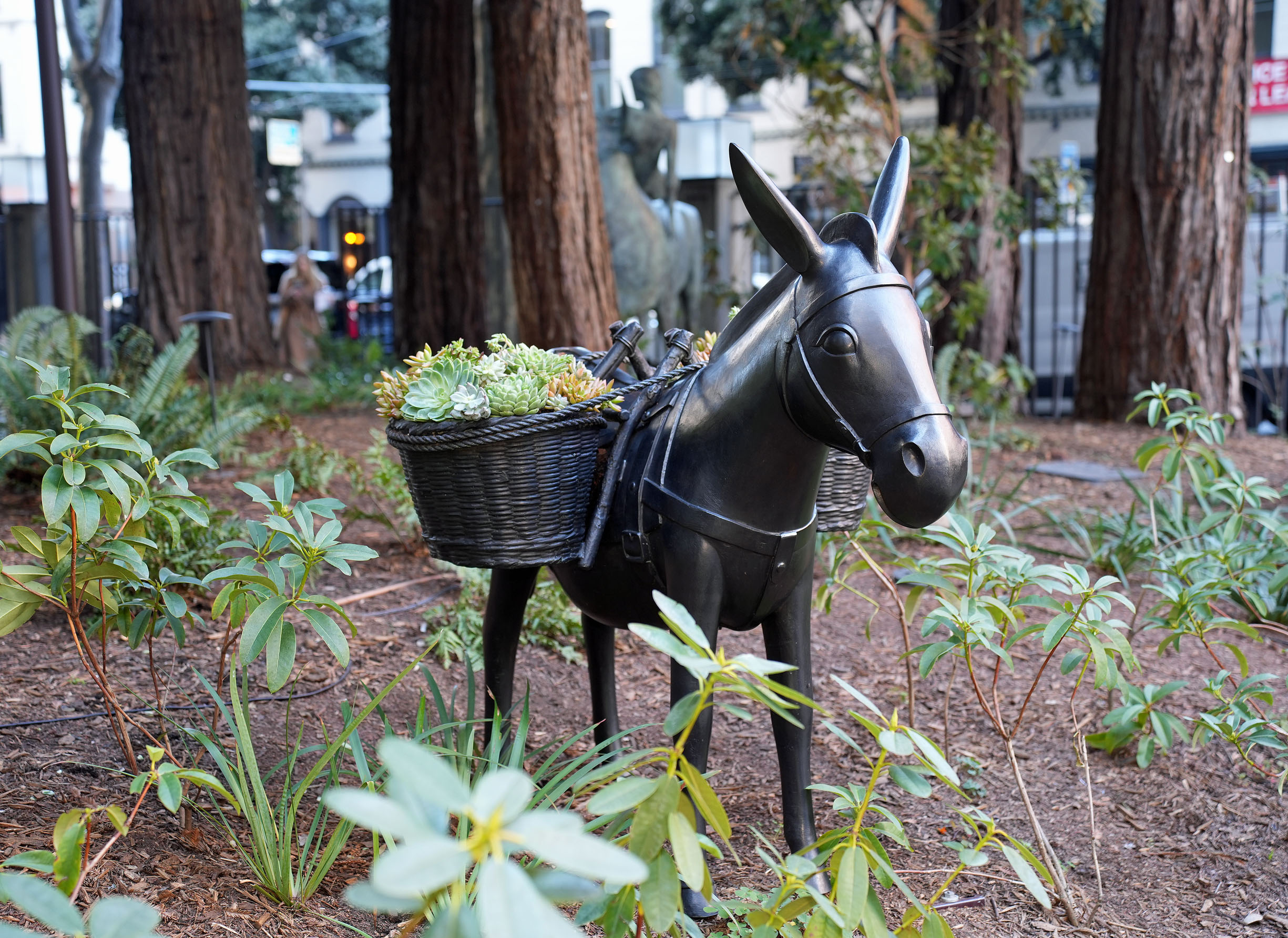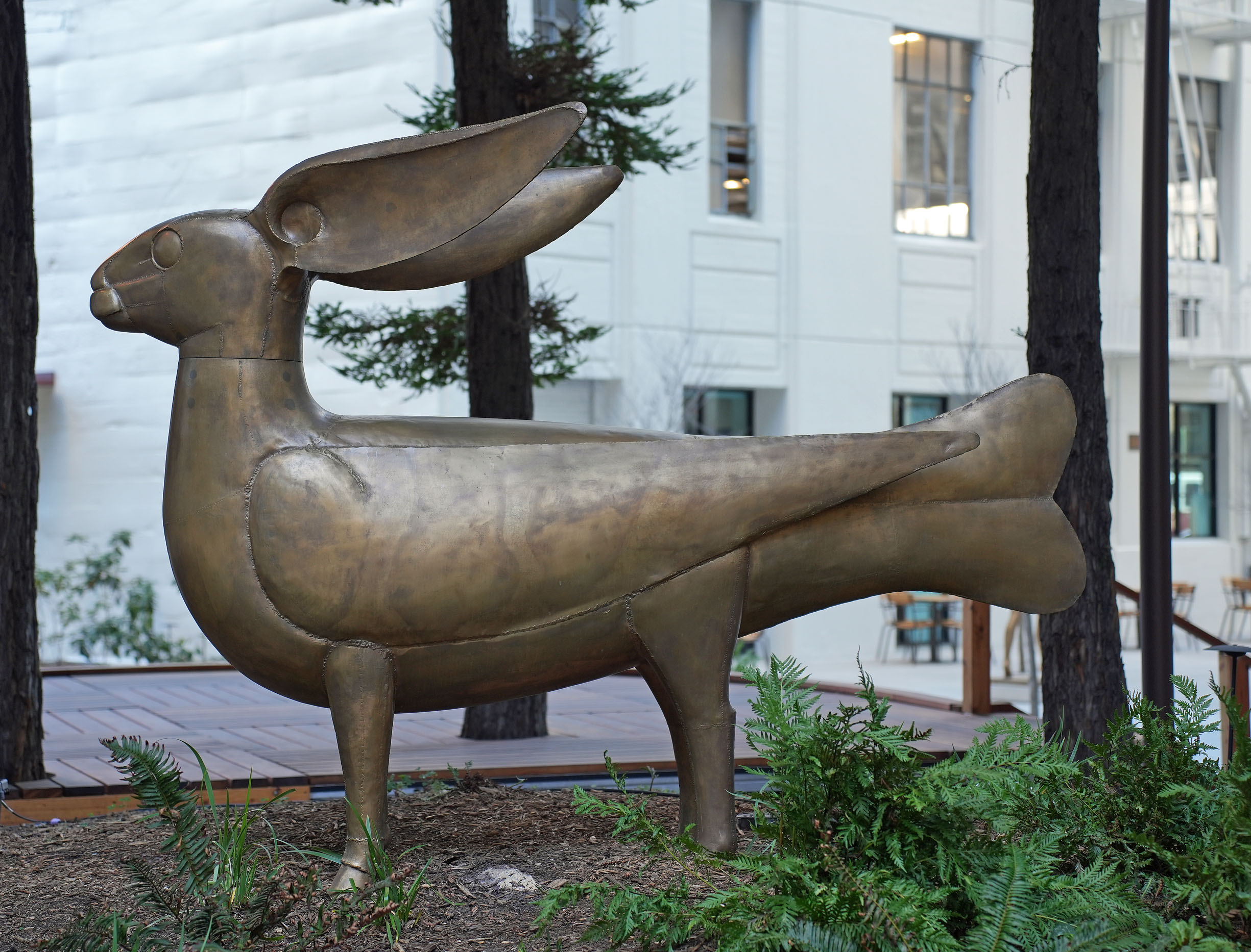 Les Lalanne (in partnership with Kasmin Gallery) featured 20 extraordinary works from the artists’ studio. Les Lalannes’ outdoor sculptures epitomize the surrealist methodology of intervening in public space, creating juxtapositions that defy expectations. Set beside the historic Transamerica Pyramid and its Redwood Park, Les Lalannes’ outdoor exhibition embodied the unexpected connections that define urban life force, encouraging audiences to consider their encounters with art, nature, and the city itself.