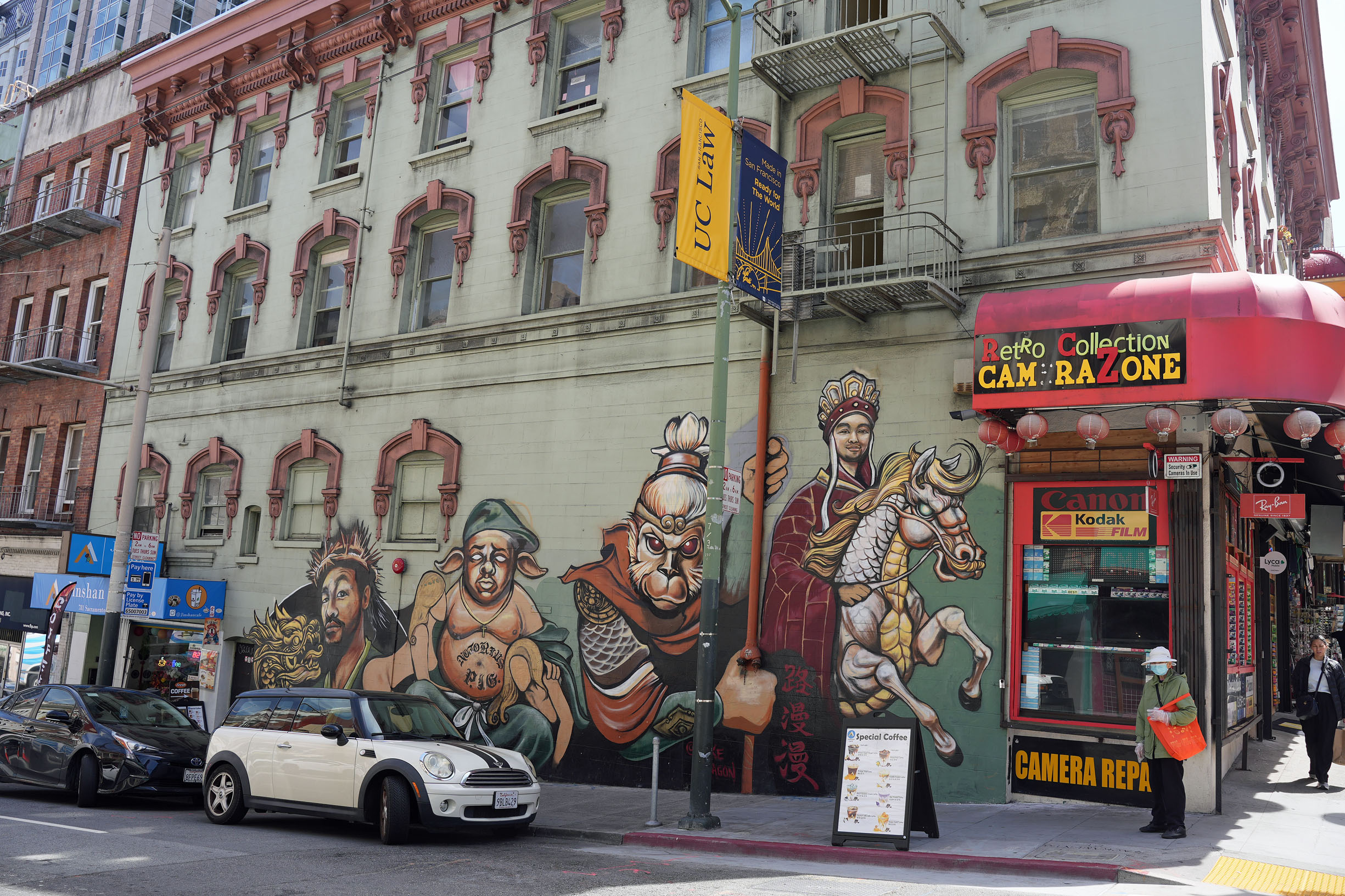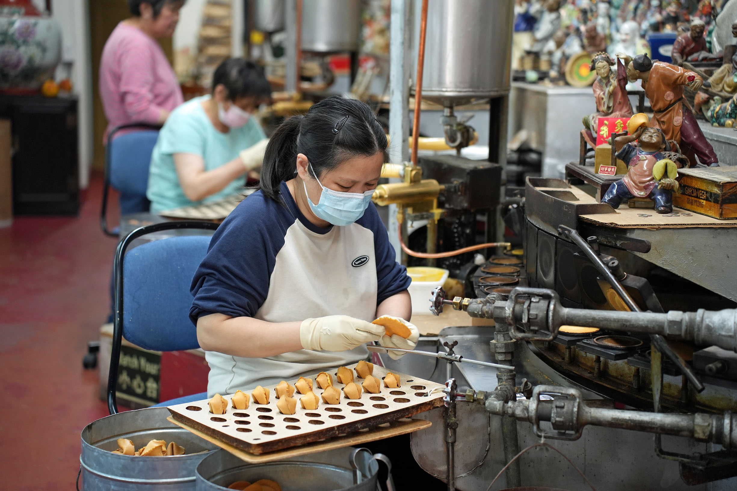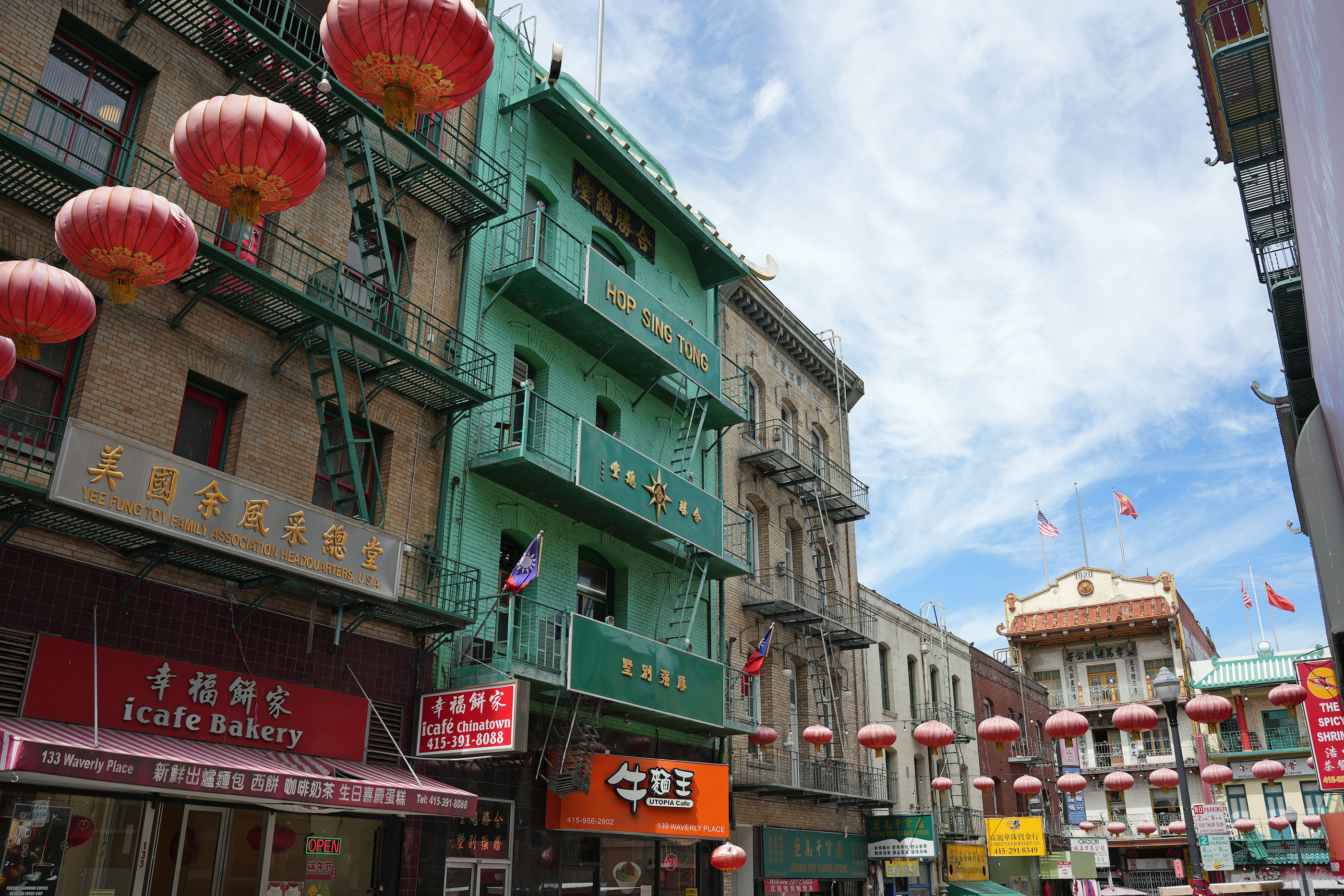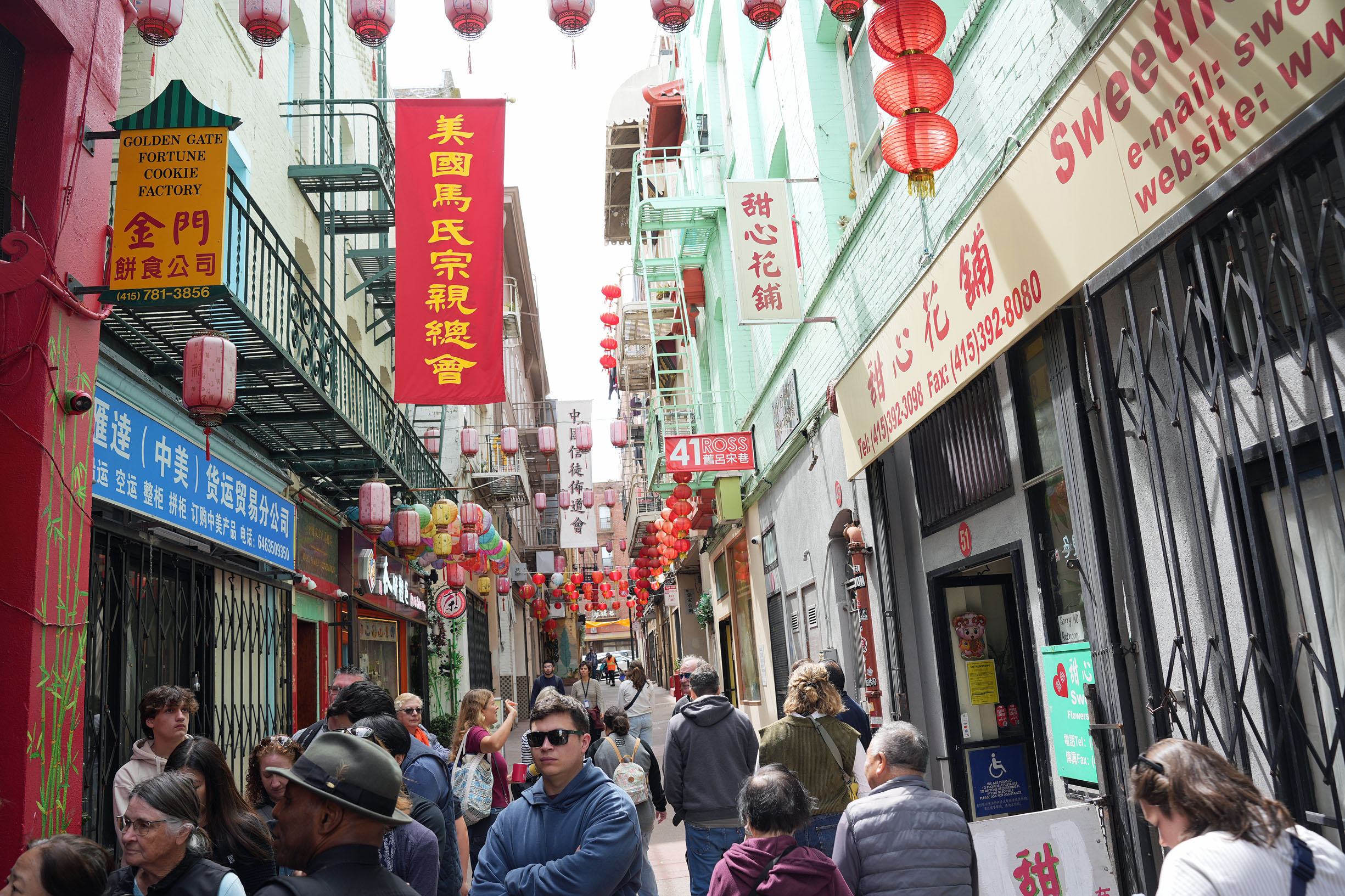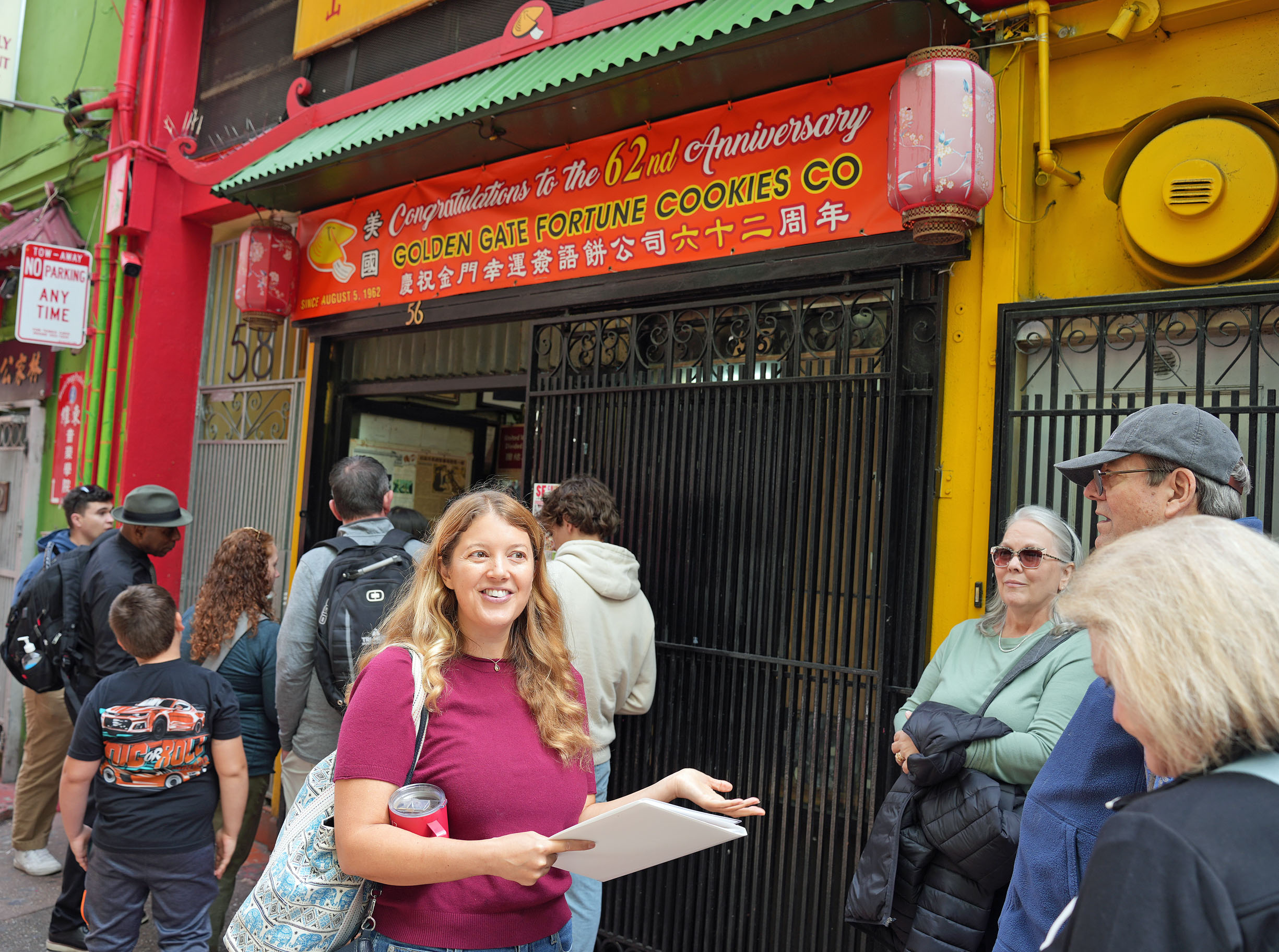 Led by our guide Marcy, we thoroughly explored the area on a well-paced walking tour with frequent stops at historic monuments, remarkable buildings, and interesting restaurants with multiple tasting offers. The Golden Gate Fortune Cookie Factory in operation since 1962, where we could observe the process of forming and folding the notorious cookie stuffed with a paper strip disclosing your fortune; Taiwan Fruit Tea Café, where we tried passion fruit green tea and a special latte with brown sugar [tapioca] pearls invented in-house; and Grant Place Restaurant, where we were seated around a table, topped with a lazy Susan loaded with Peking duck buns, vegetable stir-fry noodles, and spicy string beans, were just a few places visited on our route.