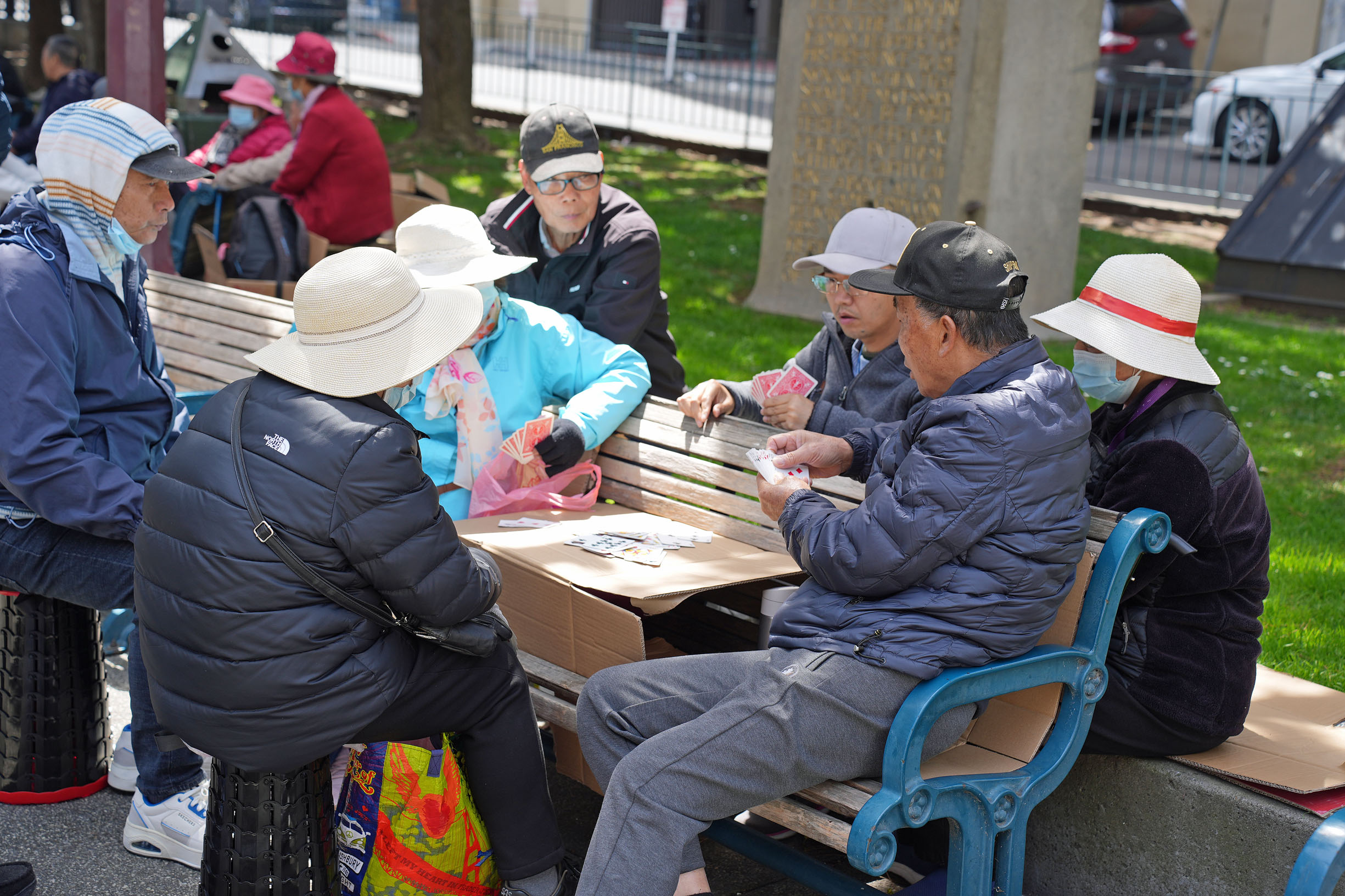 The entire square, with its green lawns, flower beds, trees, benches, and a children’s playground serves as an outdoor gathering place for the locals who come here to indulge in various hobbies from playing table games to singing complicated arias from Chinese operas.