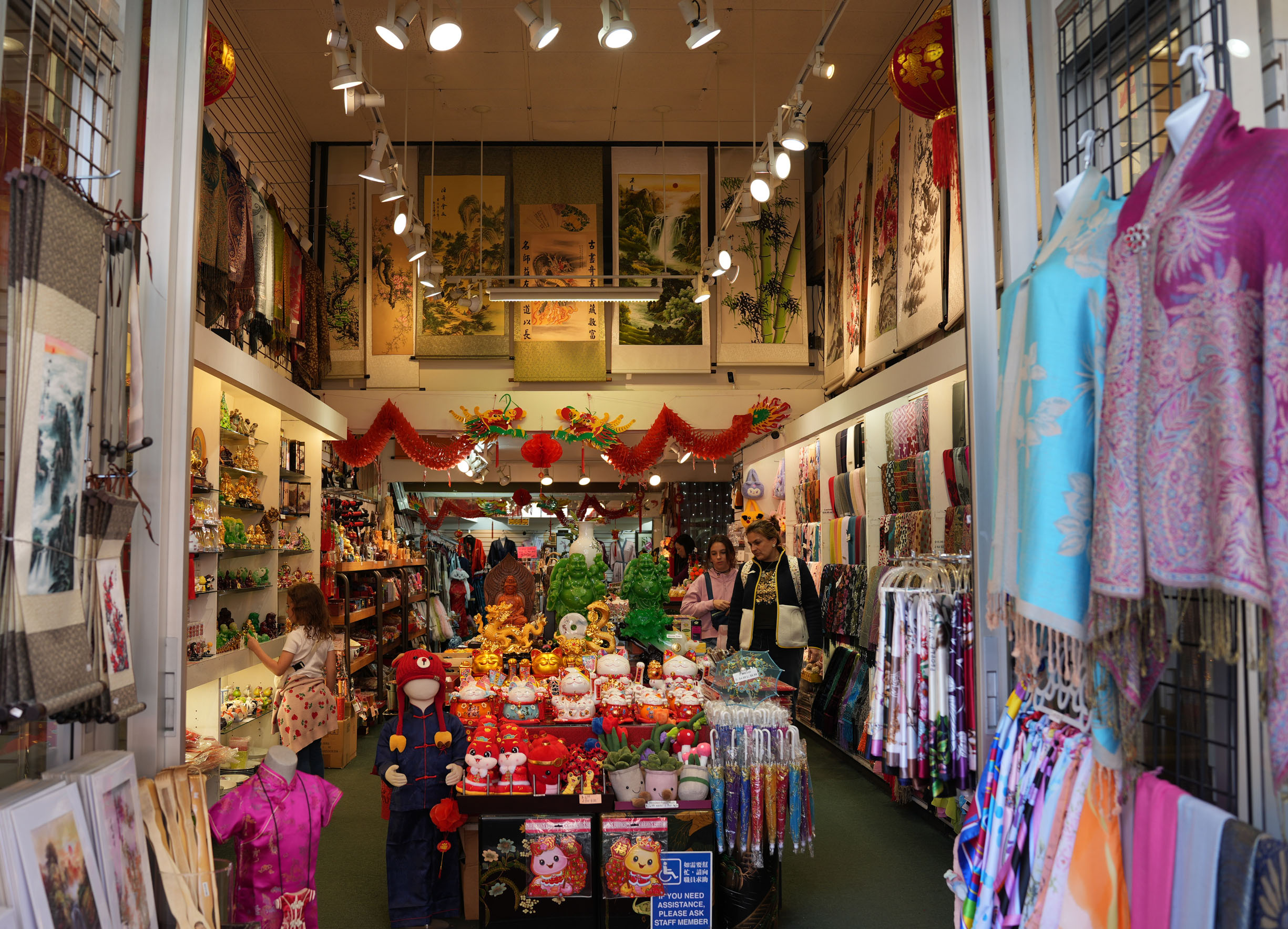 All around it, alongside the main arteries of this part of the city, often decorated with red lanterns overhead, there’s a maze of 41 historic alleyways, full of wonderful surprises, like old temples, filled with a fragrant smoke of burning incense and auspicious red and gold ribbons; picturesque dwellings under pagoda roofs; secret doors and passages that in the olden days served as escape routes from illicit gambling houses; souvenir shops overflowing with shiny trinkets; lavish jewelry displays; medicinal herbs and spices kiosks; densely stacked tea houses; fish markets and vegetable counters; intricate statues and wall murals.