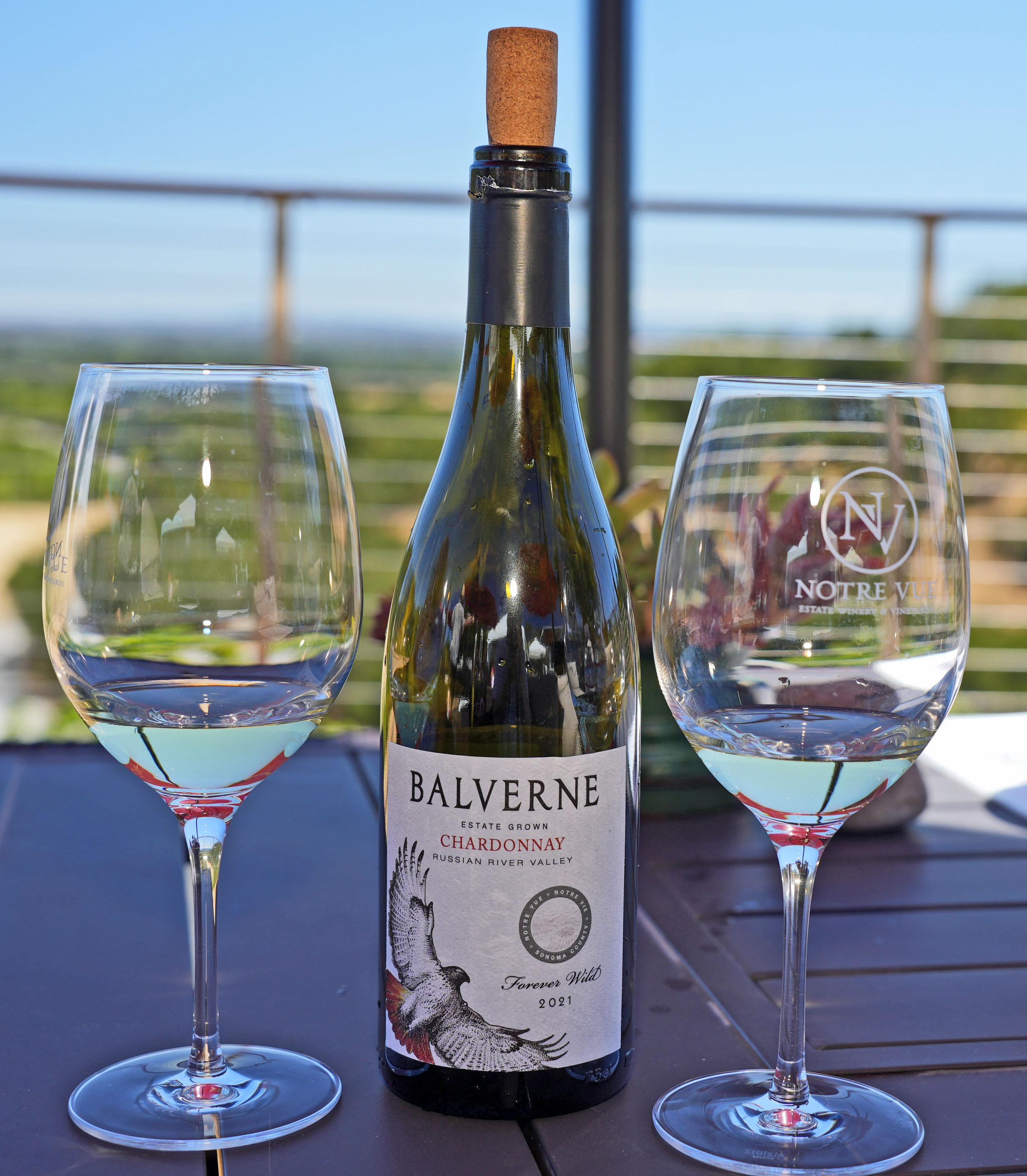 Notre Vue, true to its name, boasts the views of the rolling hills covered with lush vines and live oaks from the winery’s large terrace, where Zach Gold, an estate ambassador, pours quite a few exquisite award-winning wines, like sparkling rose, sauvignon blanc, chardonnay, pinot noir, cabernet franc, Rhone-style and Bordeaux varieties blends, malbec, and merlot from both Balverne (a legacy name) and Notre Vue wine lists.