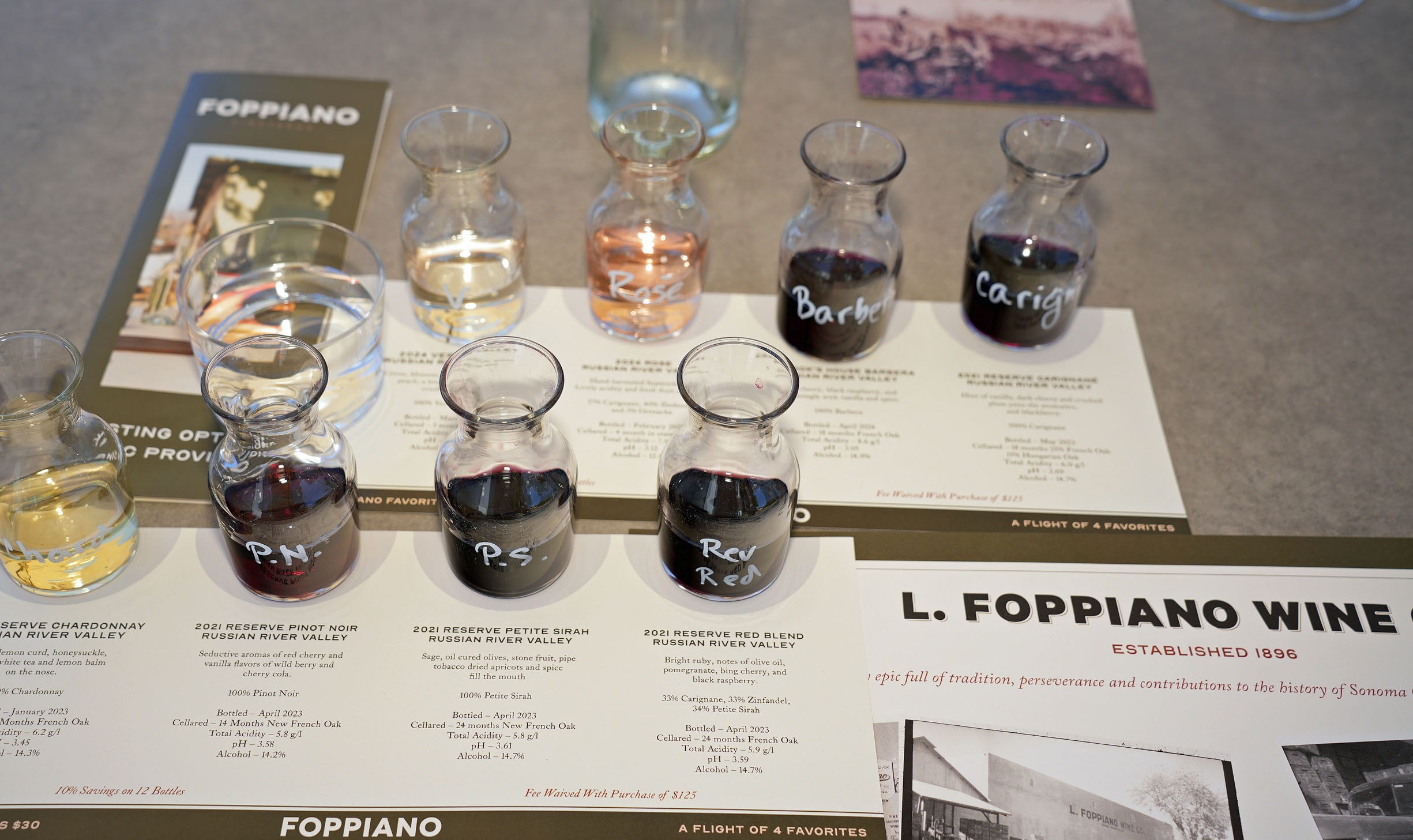 The partner wineries—Notre Vue Estate Winery & Vineyards, Limerick Lane Cellars, and Foppiano Vineyards showcase their small-production wines, some only available on the premises.