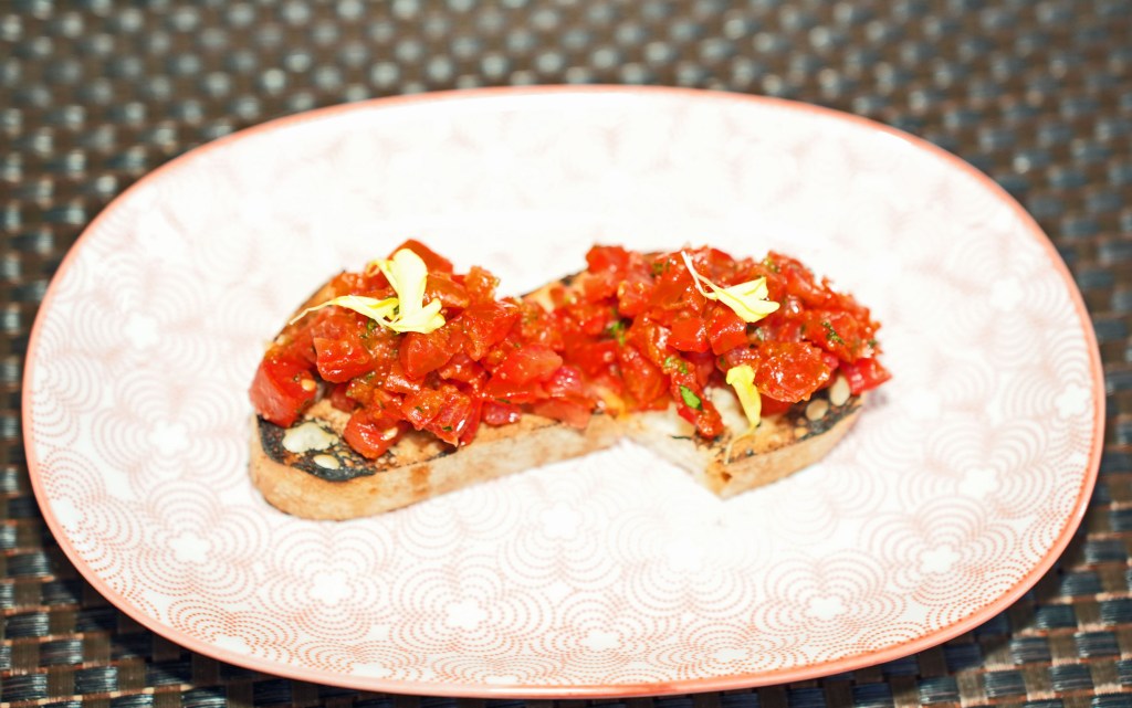 La Nostra Bruschetta with basil on ciabatta bread is a must-have small plate from the veggie menu—Chef Bertoldo’s special recipe of extracting liquid from tomatoes and marinating them with salt and sugar to achieve maximum juiciness and crunchiness.