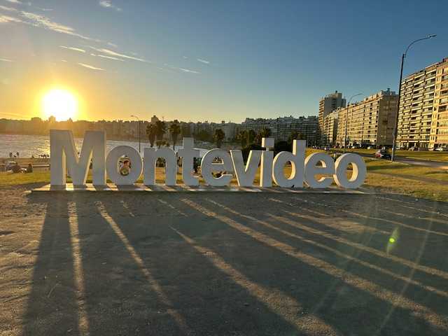 The Montevideo sign: Directly across from the Hyatt is the picture spot for the Montevideo sign. This view beyond the sign is the Pocitos Beach as it curves along the Rambla. Locals come to the sign every evening to picnic and see the colorful sunsets, which took place around 8 p.m. in mid-January. Palm trees provide some shade. There are plenty of benches to sit on and enjoy the sun setting.