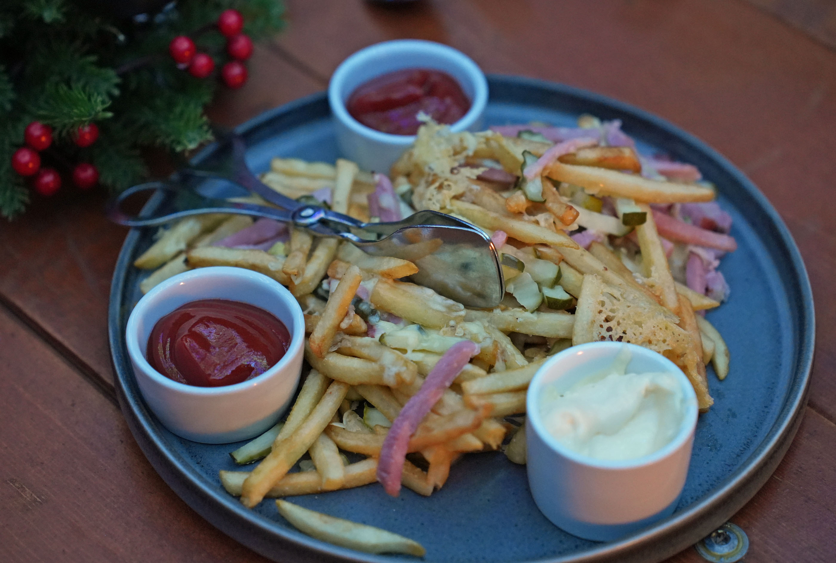 On the food menu there are quite a few typical ski resort dishes that would immediately transport you into the snowy Alps. Some standouts include Winter Chicory Salad made with grilled pear, pomegranate kernels, spiced pumpkin seeds, and citrus Dijon dressing; Steak Tartar Tartine on rosemary lemon sourdough toast, garnished with cornichons, cured egg yolk, aioli and pecorino cheese, and Alpine Fries, topped with rosemary ham, pickles, and raclette—a semi-soft cheese, originally from the Swiss Canton of Valais, named after the French word “racler” (to scrape), and traditionally melted and scraped over fried potatoes for its creamy texture and piquant taste.