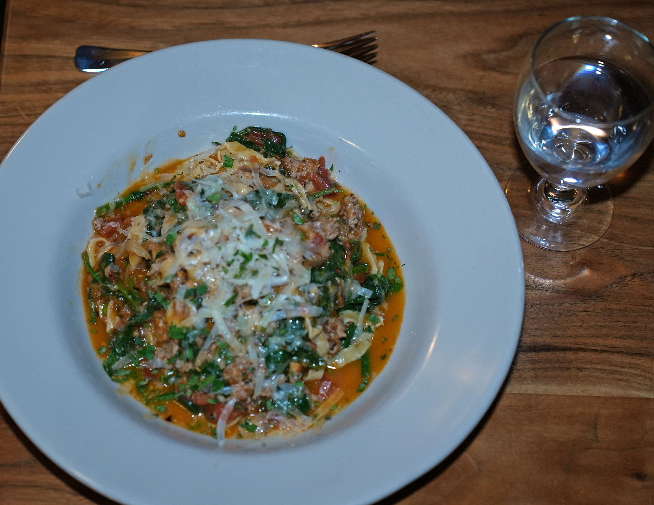 A cocktail program includes original creations from the bar, like Once Bitten, made with the local Mendocino Spirits Gin, Philo Apple Farm organic juice from a nearby orchard, lemon juice, and housemade “Snake Oil” bitters in addition to signature items, like Manhattan Noir with Bulleit bourbon, Cynar artichoke liqueur, housemade cabernet cherry syrup, and Fee Brothers Old Fashioned Bitters.