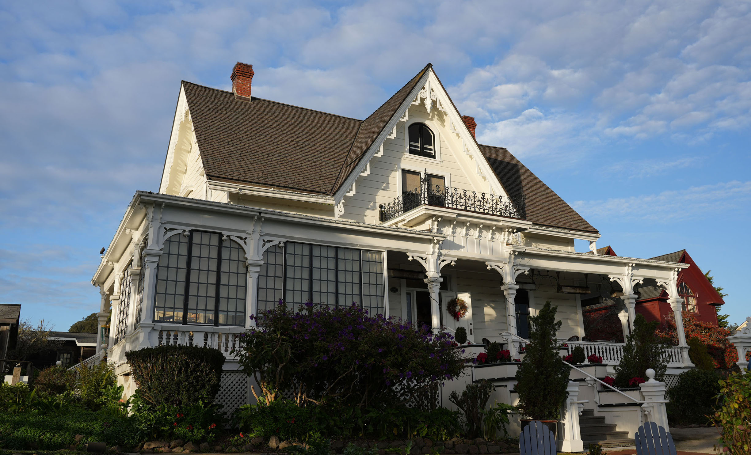 MacCallum House Inn, a historic landmark in the city center,stands out even among thepredominantly 19th-century architecture of the former lumber town with its well-preserved Victorian, clapboard, and saltbox houses, constructed of local redwood.