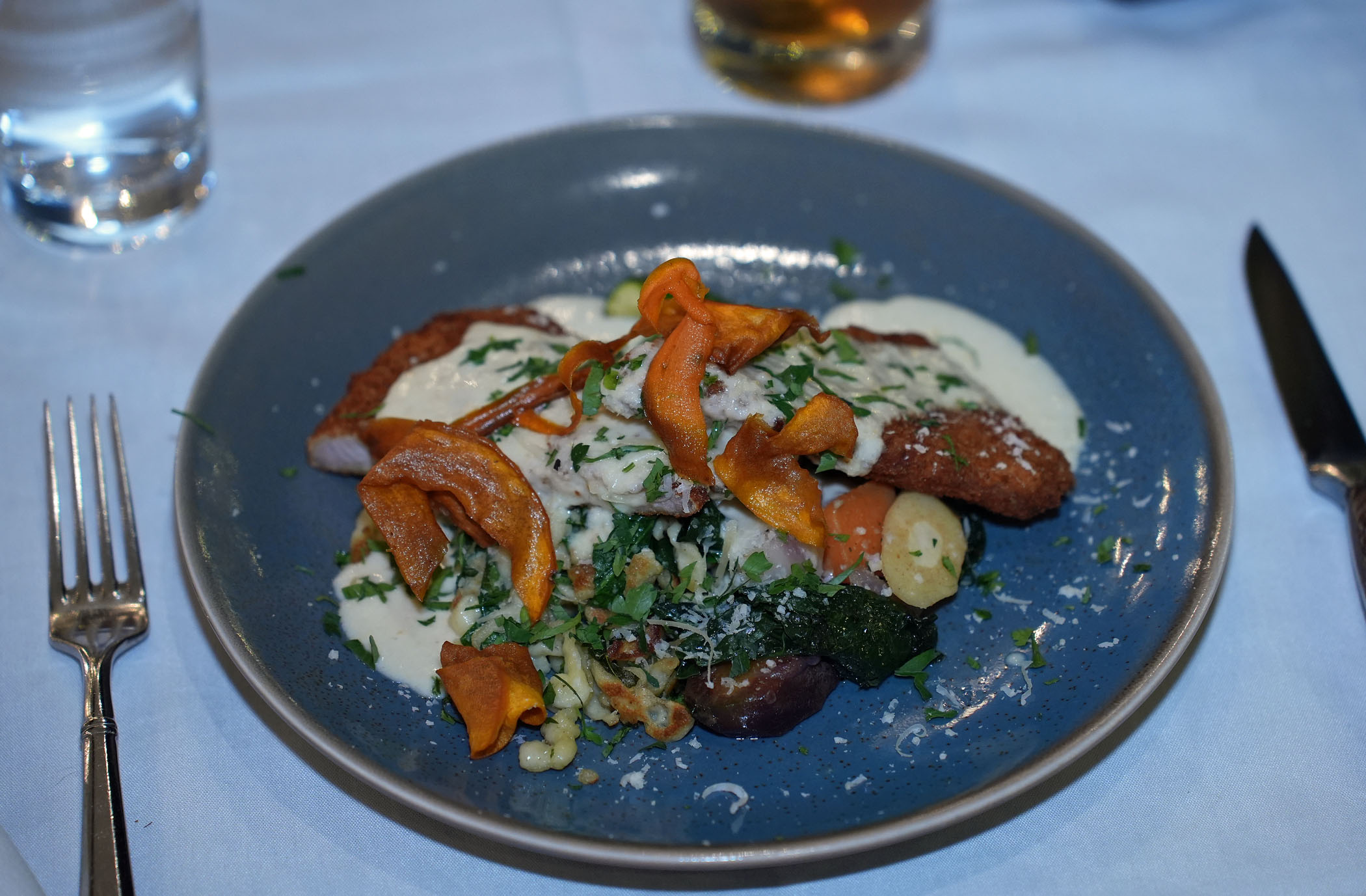Start with creative cocktails that contain housemade and locally sourced ingredients, like Lilac French 75 (Empress Gin, Elderflower Liqueur, Crème de Violette, Fresh Lemon Juice, Housemade Lilac Bitters, Scharffenberger Cremant) or Candy Cap Old Fashioned, based on bourbon infused with seasonal candy cap mushrooms.