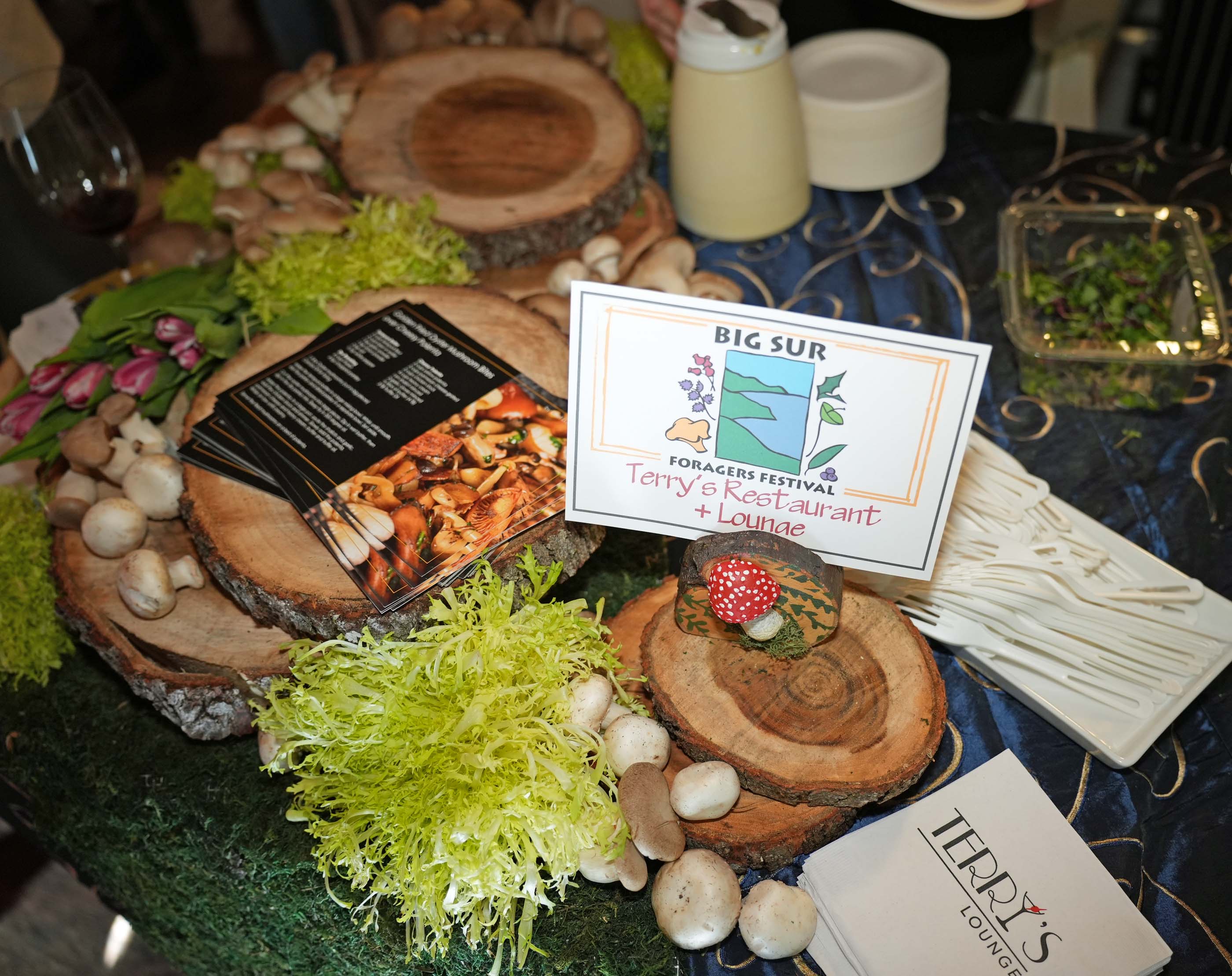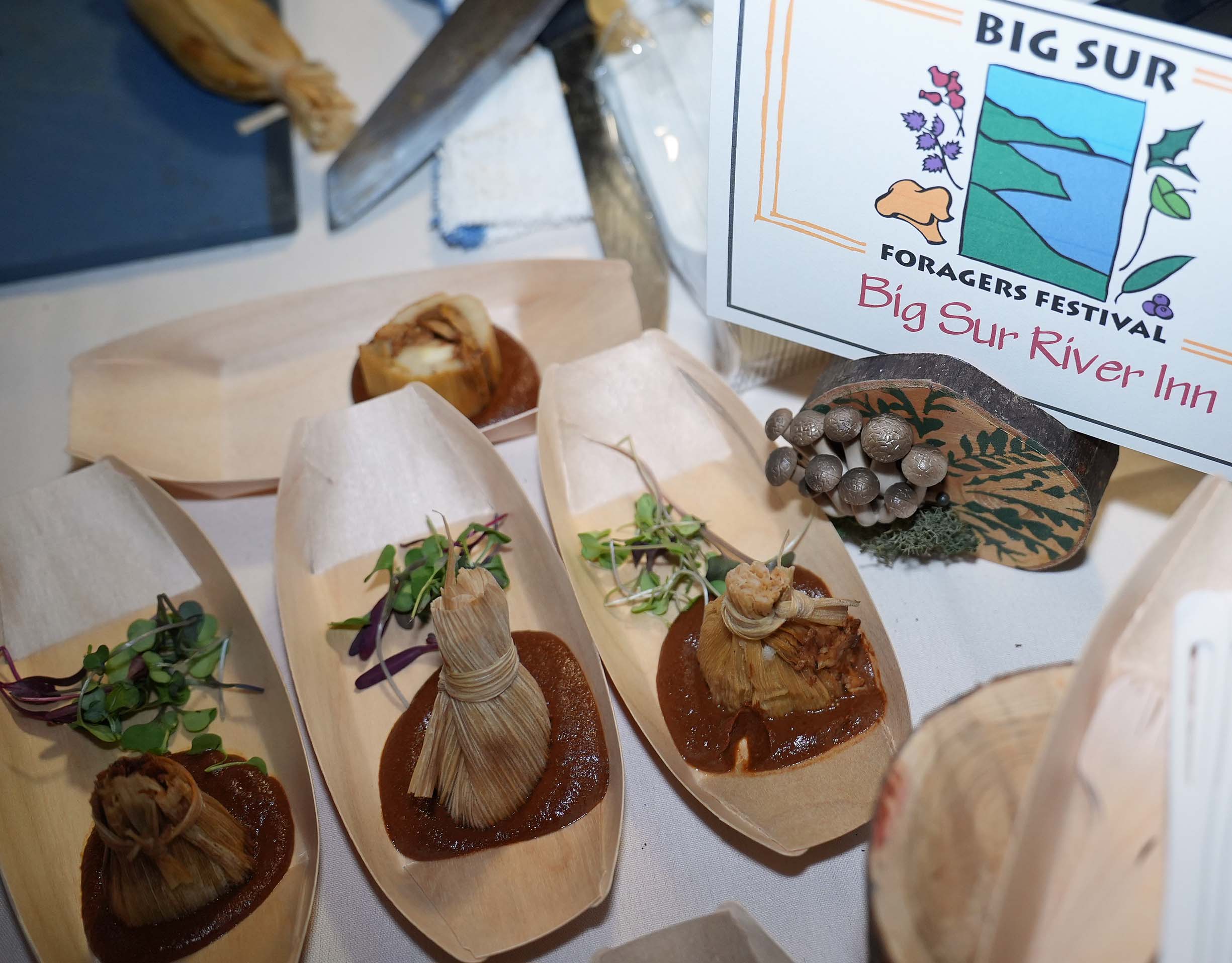 After the event, the winners of the Fungus Face Off were announced. Besides the abovementioned Terry’s Restaurant + Lounge, People’s Choice winner, Wild Plum Café was awarded for the Best Use of Foraged Ingredients in its Wild mushroom medley with garlic over polenta; Big Sur River Inn was named Most Creative for Chanterelle tamale with mushroom mole, and Deetjen’s was Best Overall for Short ribs with enoki mushrooms, porcini, pickled onion, micro cilantro and cheesy polenta.